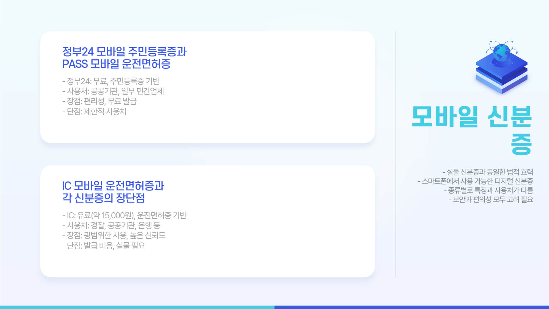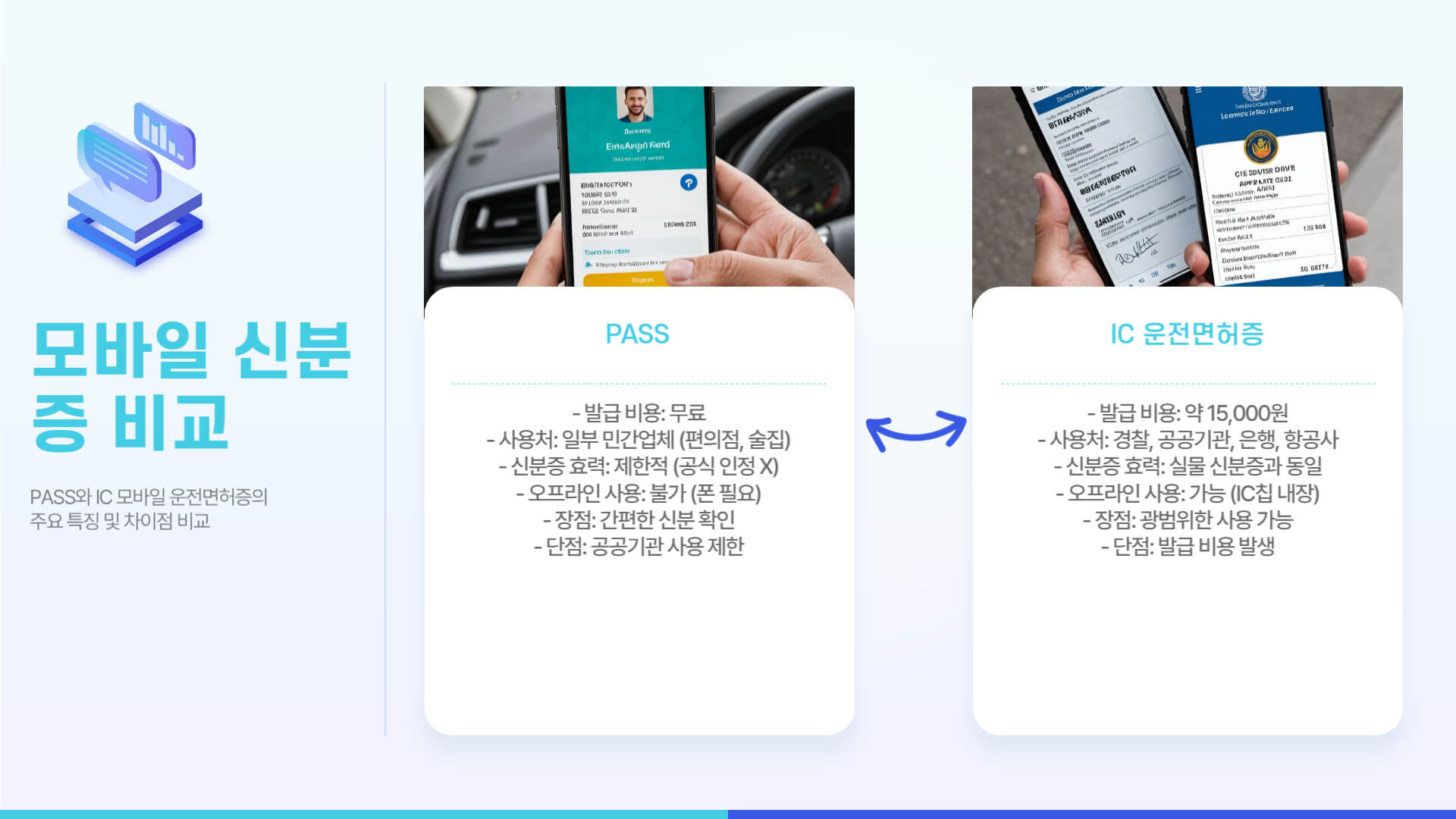 ❓ Q. PASS 모바일 신분증과 IC 모바일 운전면허증의 차이점이 뭔가요?