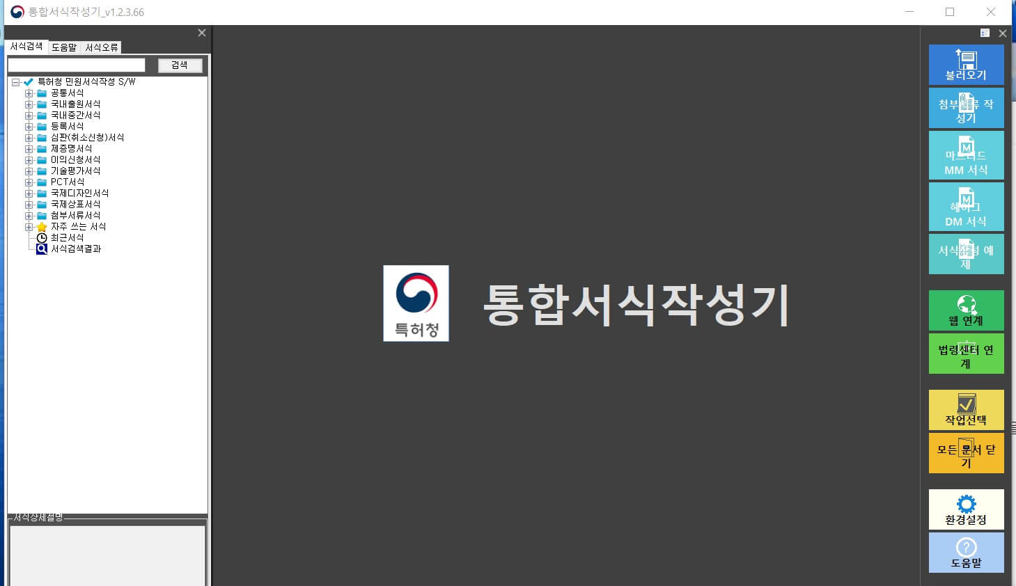 통합서식작성기만 다운로드 받아 실행시키면 아래와 같은 화면에서