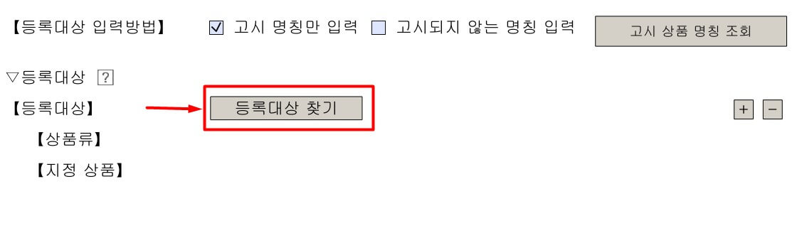 등록대상찾기 클릭