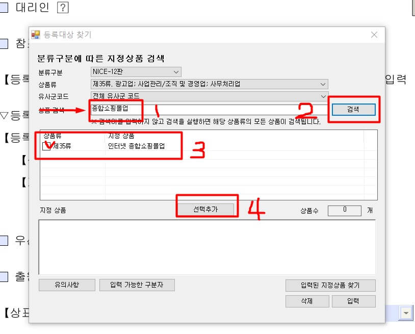 [등록대상] 은 보통 온라인 셀러분들이 인터넷 종합쇼핑몰업 35류를 많이들 하시기에 추천드립니다.