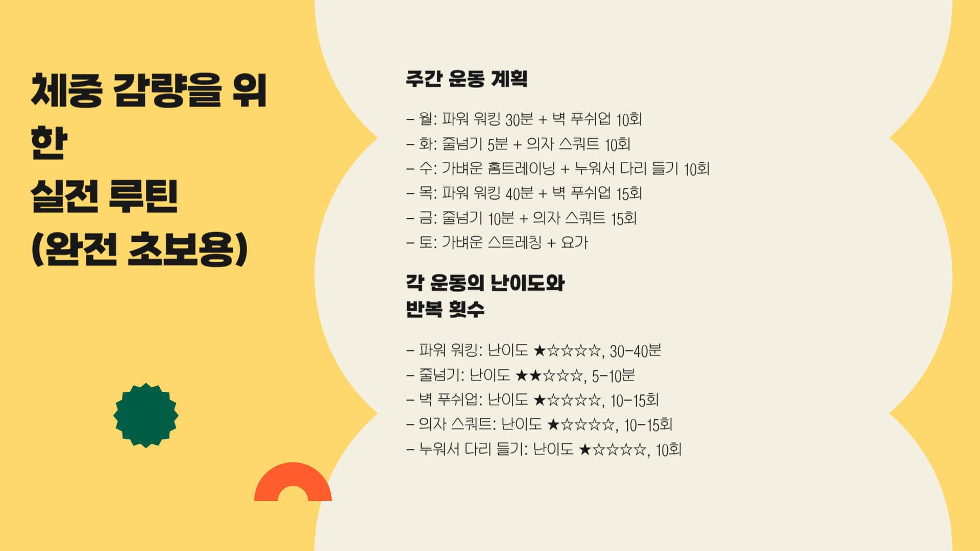 3. 체중 감량을 위한 실전 루틴 (완전 초보용)